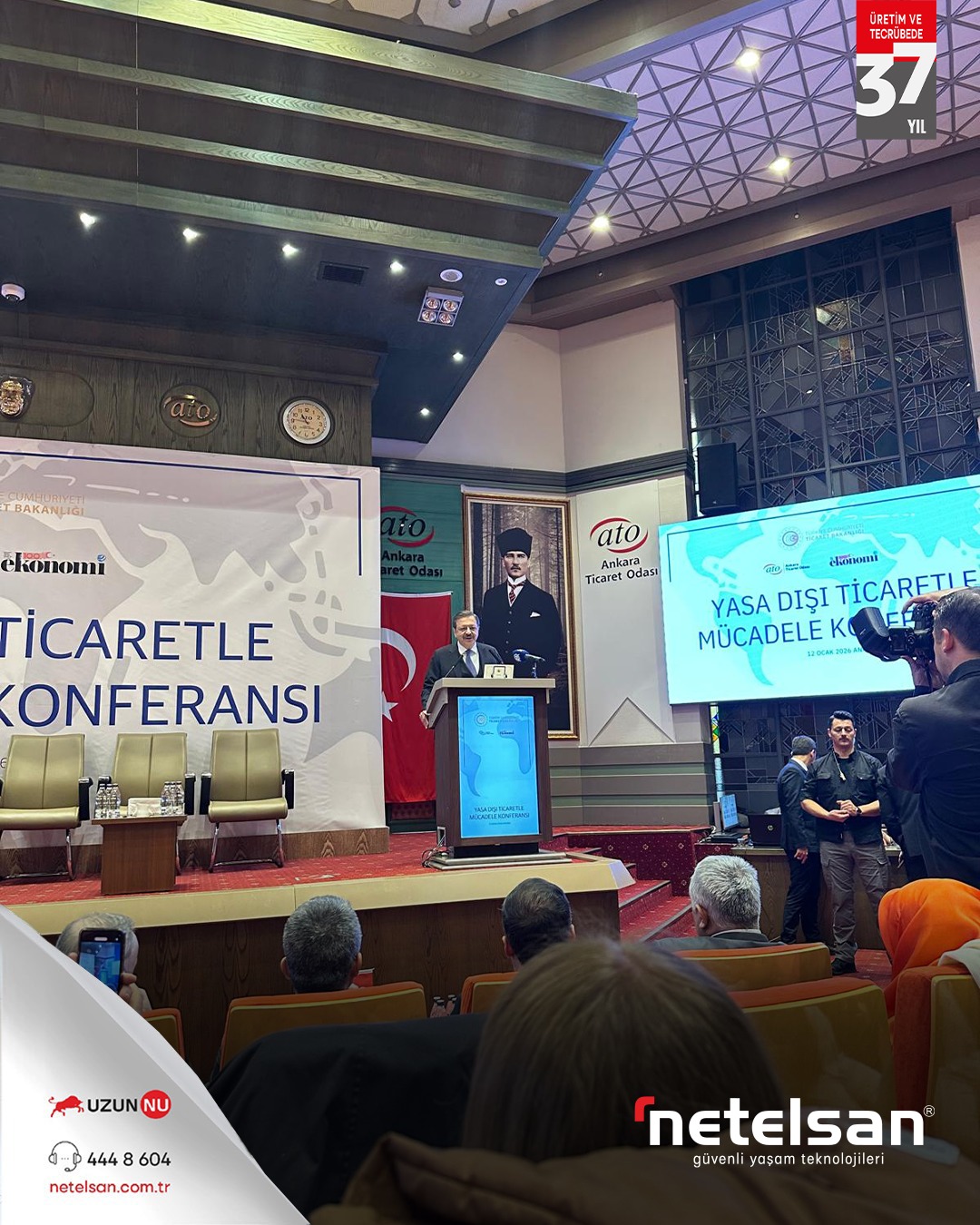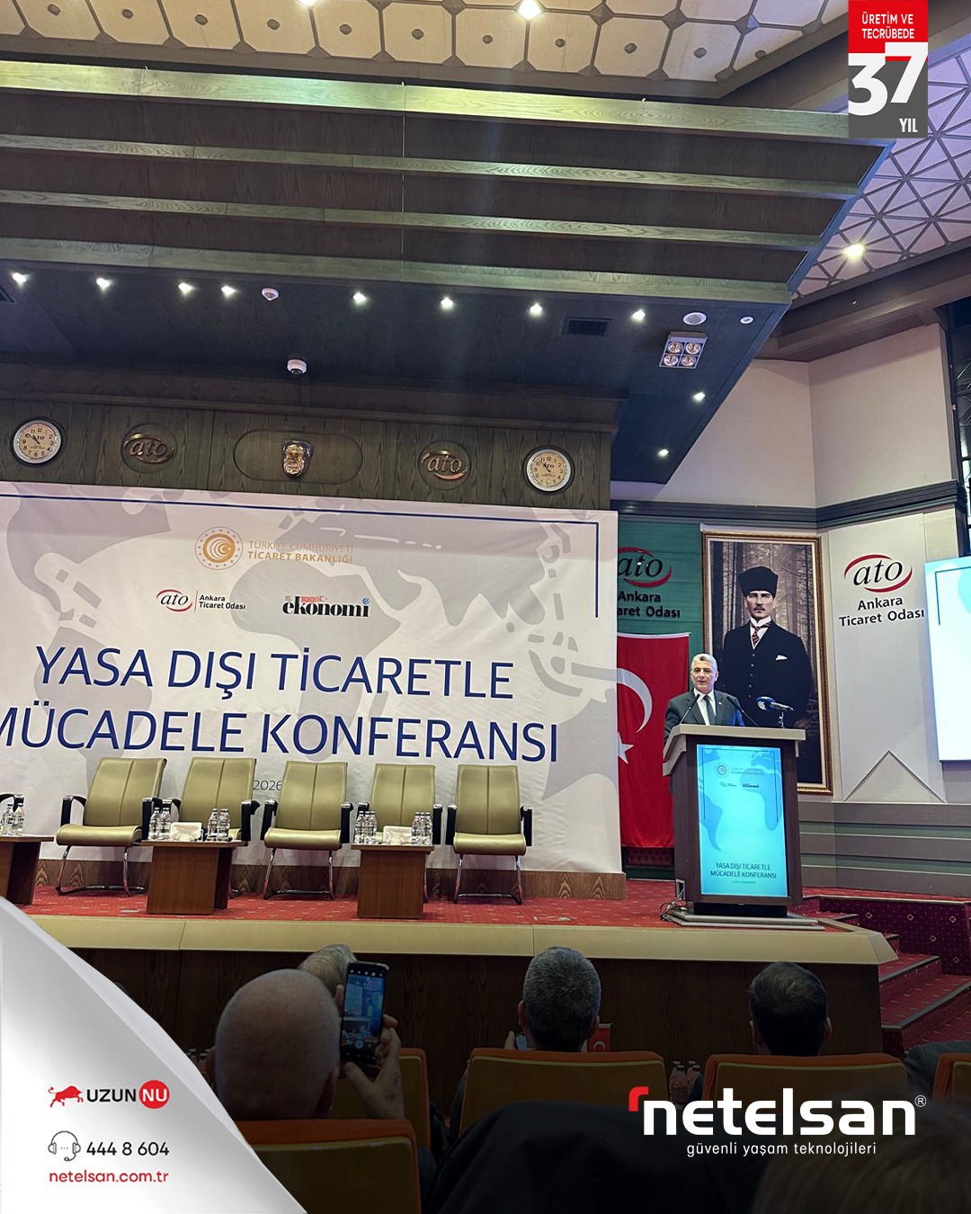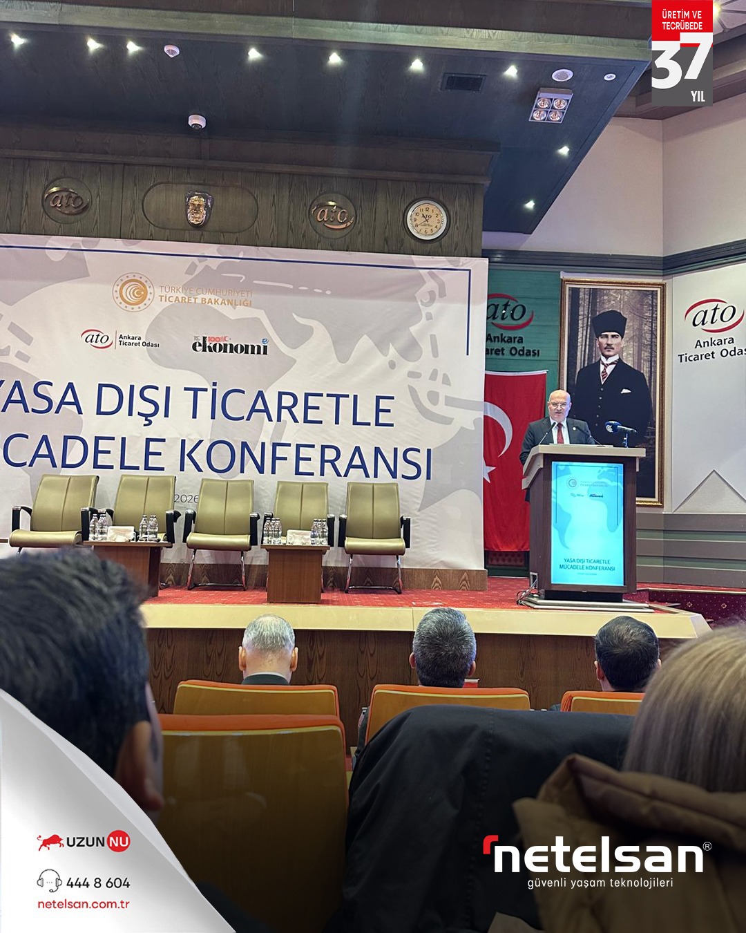 Netelsan YK Başkanı Sayın Necmettin Uzun tarafından; Ticaret Bakanı Sayın Ömer Bolat’ın teşrif ettiği, Türkiye Odalar ve Borsalar Birliği Başkanı Sayın M. Rifat Hisarcıklıoğlu ile ATO Yönetim Kurulu Başkanı Sayın Gürsel Baran’ın açılış konuşmalarını yaptığı Yasadışı Ticaretle Mücadele Konferansı’na katılım sağlanmıştır.